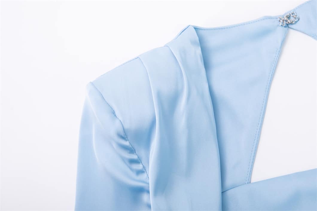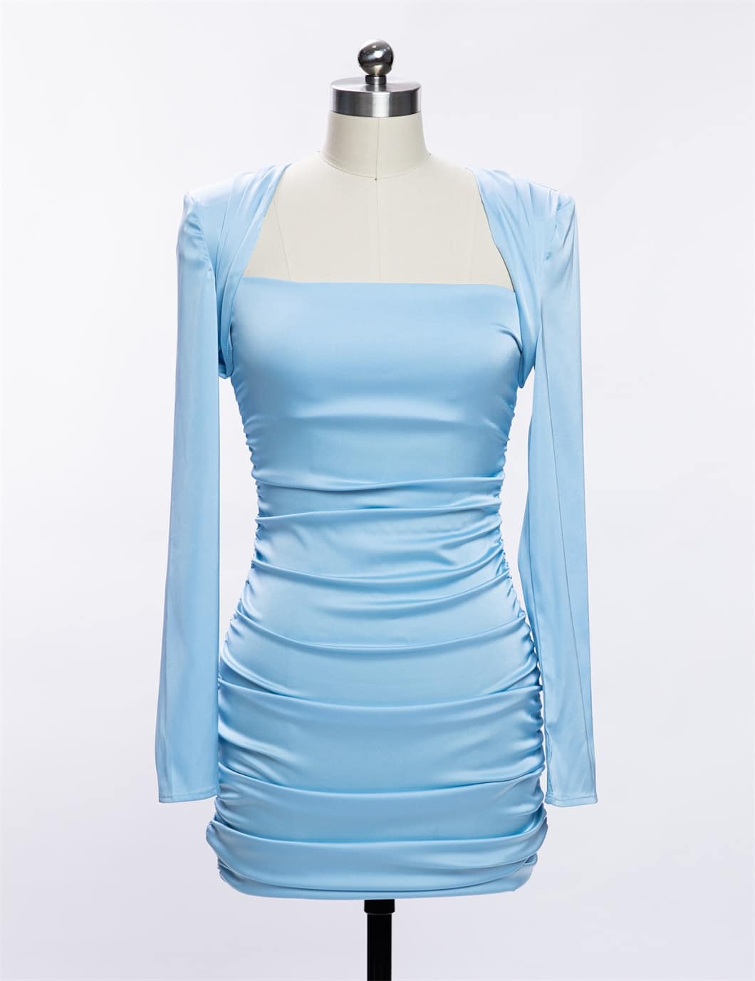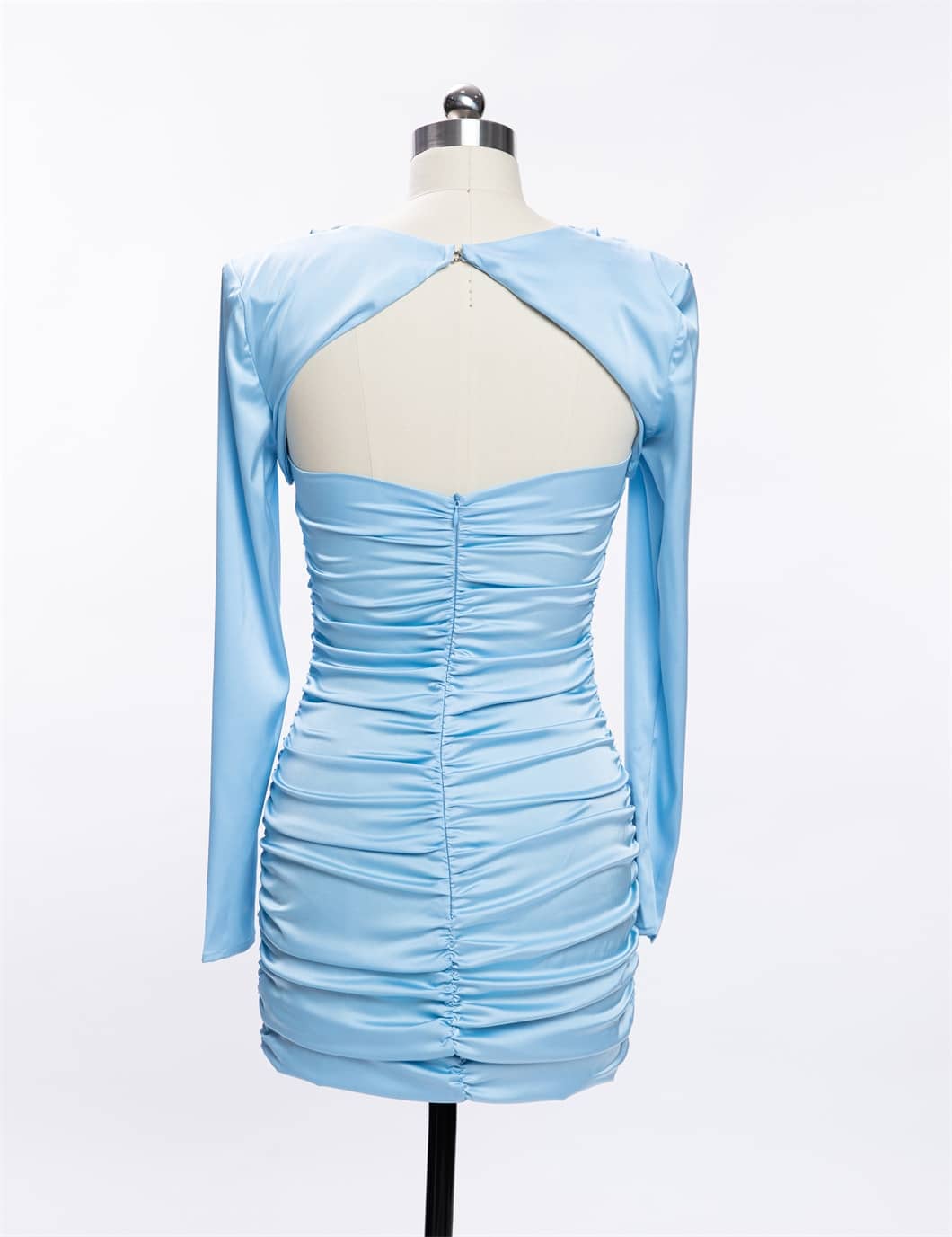 שמלת מיני נשף תכלת Smocking שרוול ארוך-קאמילה