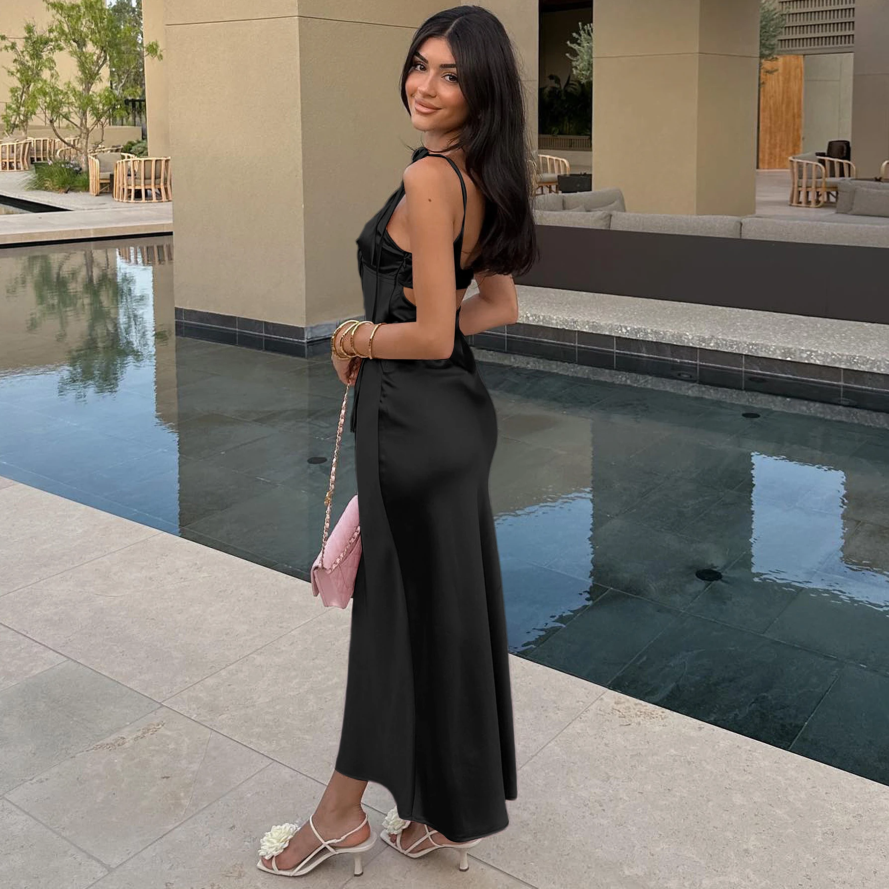 Dulzura ללא גב תחרה עד רצועות ספגטי לחתוך את midi שמלת נשים מועדון חג ערב חג שמלות ערב שמלות y2k משלוח (משלוח חינם)