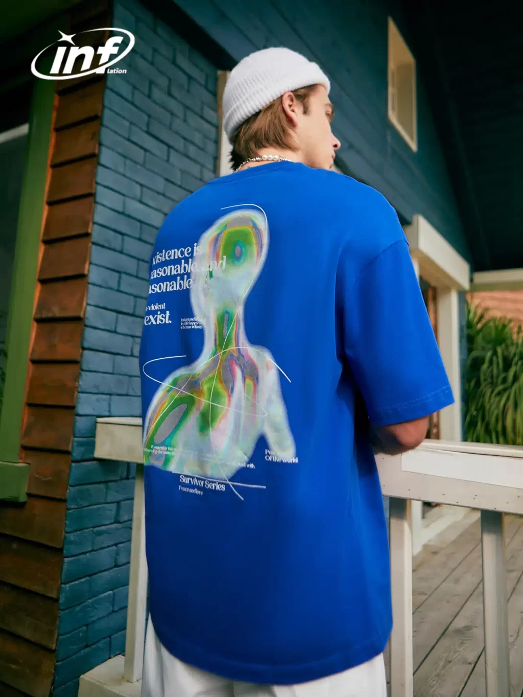 חולצת טישיירט גברים בסגנון היפ הופ רחבה בעלת כתפיים זרוקות מראה נוער.